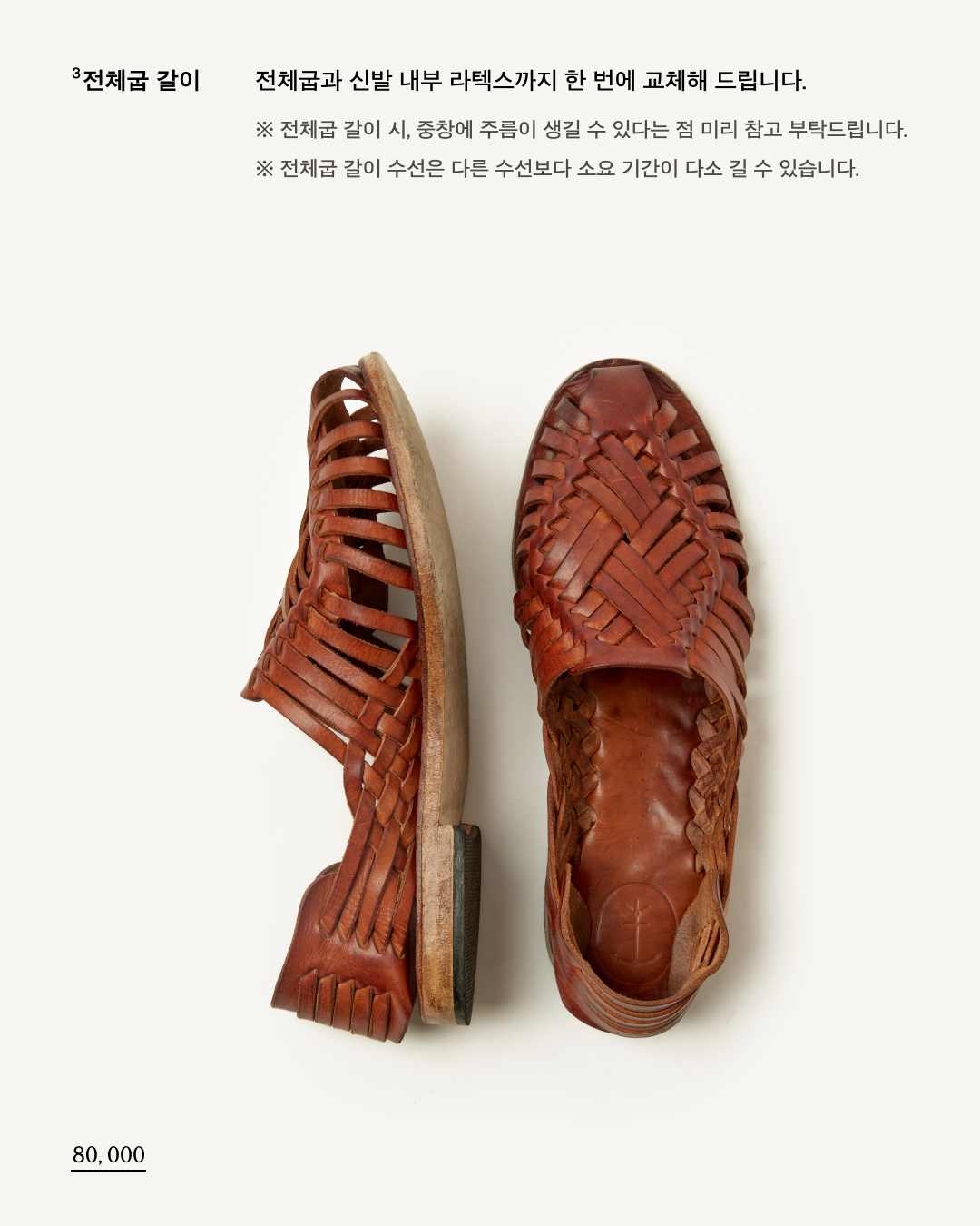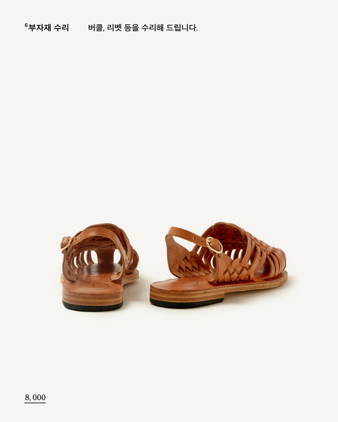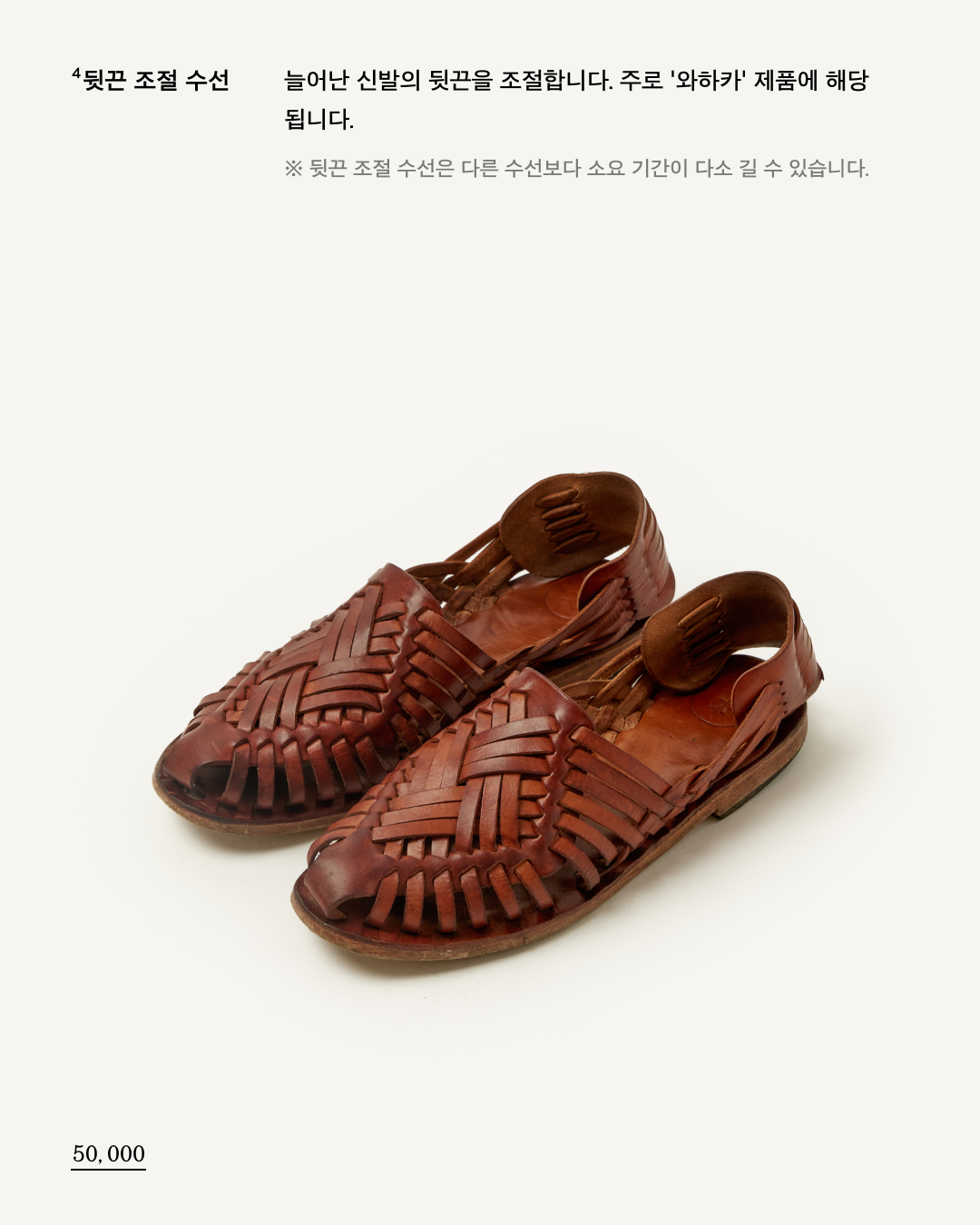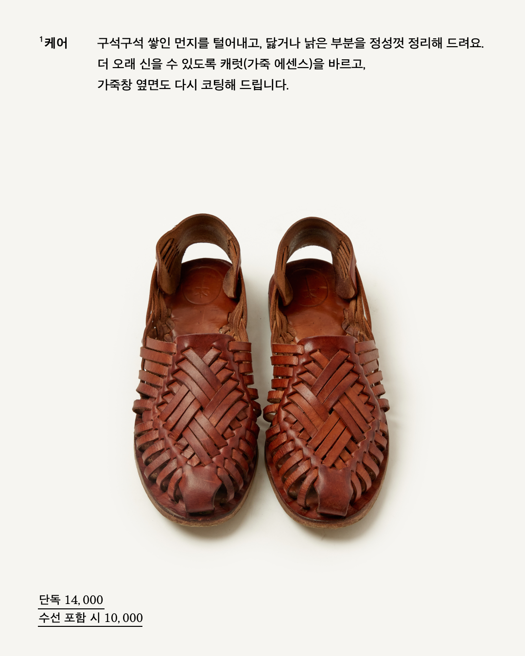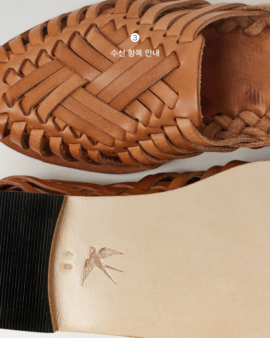 * 색상 및 사이즈의 미세한 차이, 주름, 미세한 스크레치는 베지터블 가죽의 고유한 특성이므로 제품의 하자가 아니며, 교환/환불의 사유가 되지 않습니다.